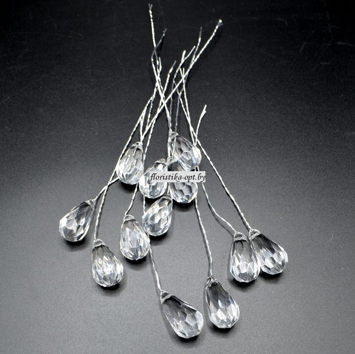 кристаллы на проволоке длина 15 см, 12шт в упаковке для оформления интерьеров, букетов и композиций покупайте оптом: 2-й пер. Крыловича, 21 и в розницу: пр-т Дзержинского, 20.