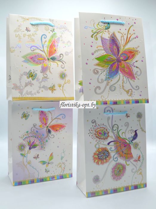Пакет подарочный бабочки, павлины микс купить оптом и в розницу в Минске. Широкий выбор размеров и расцветок. Приглашаем за покупками опт: 2-й пер. Крыловича, 21; розница: пр-т Дзержинского, 20