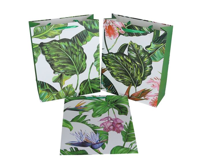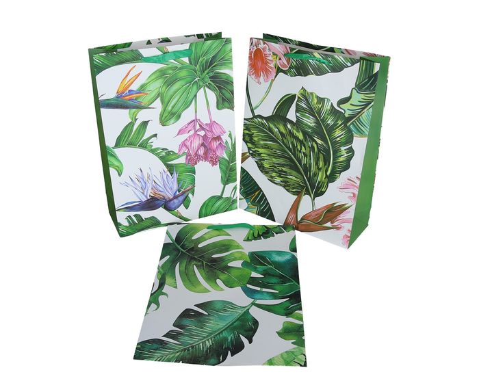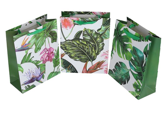 Пакет подарочный бумажный Листья пальмы микс разных размеров купить оптом и в розницу в Минске. Широкий выбор размеров и расцветок. Приглашаем за покупками опт: 2-й пер. Крыловича, 21; розница: пр-т Дзержинского, 20