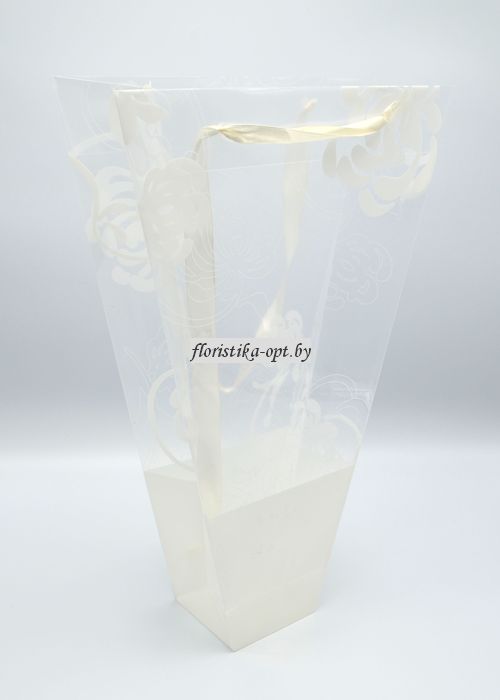 Сумка для цветов 36х20х7 пластиковая белая купить оптом и в розницу в Минске. Широкий выбор размеров и расцветок. Приглашаем за покупками опт: 2-й пер. Крыловича, 21; розница: пр-т Дзержинского, 20
