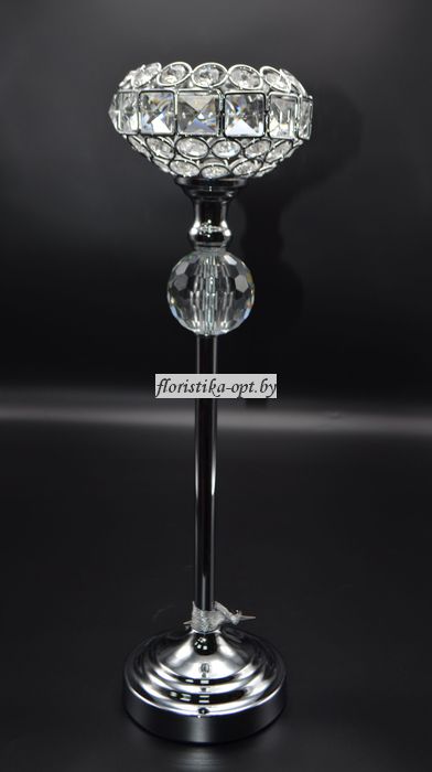 Подсвечник высокий на хромированной ножке плафон чаша с кристаллами. Оригинальный предмет интерьера будет отличным подарком для запоминающихся дат. Купить можно в нашем цветочном магазине "Цветы, Флористика, Декор" г. Минск, пр-т Дзержинского, 20.