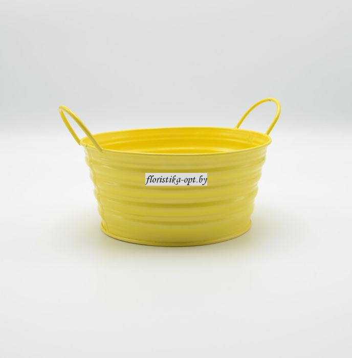 Плошка металлическая крашенная с ручками круглая желтая купить оптом и в розницу для комнатных растений, цветов и букетов. Приглашаем за покупками оптом на наш склад г. Минск, 2 пер. Крыловича, 21 и в розницу в цветочный магазин "ЦВЕТЫ ФЛОРИСТИКА ДЕКОР", г. Минск, пр-т Дзержинского, 20. Телефон за связи: опт: 8 029 778 50 28, розница: 8 029 175 33 33