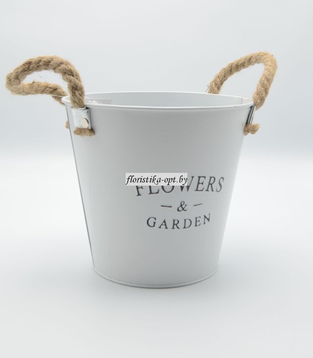 Ведерко металлическое белое с джутовыми ручками купить оптом и в розницу для комнатных растений, цветов и букетов. Приглашаем за покупками оптом на наш склад г. Минск, 2 пер. Крыловича, 21 и в розницу в цветочный магазин "ЦВЕТЫ ФЛОРИСТИКА ДЕКОР", г. Минск, пр-т Дзержинского, 20. Телефон за связи: опт: 8 029 778 50 28, розница: 8 029 175 33 33